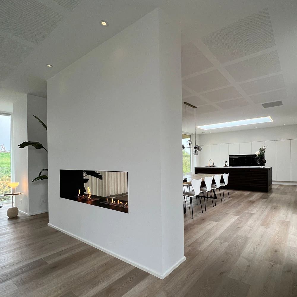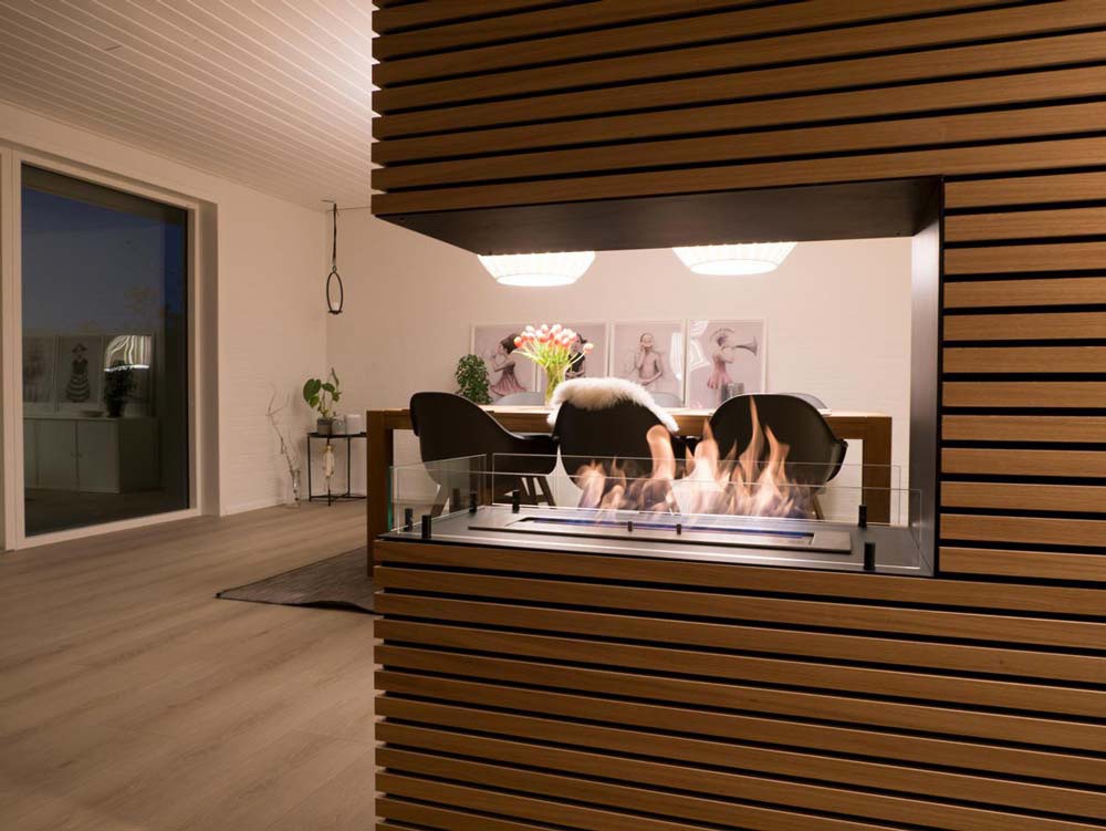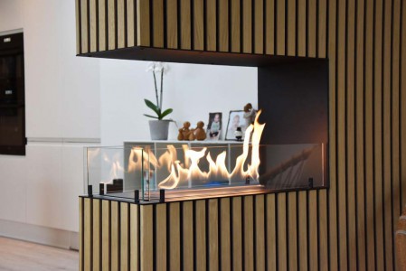 Here you can find many nice pictures of how our customers have built their bio fireplace into the wall. If you want to buy one of our built-in bio fireplaces, you can find them here.