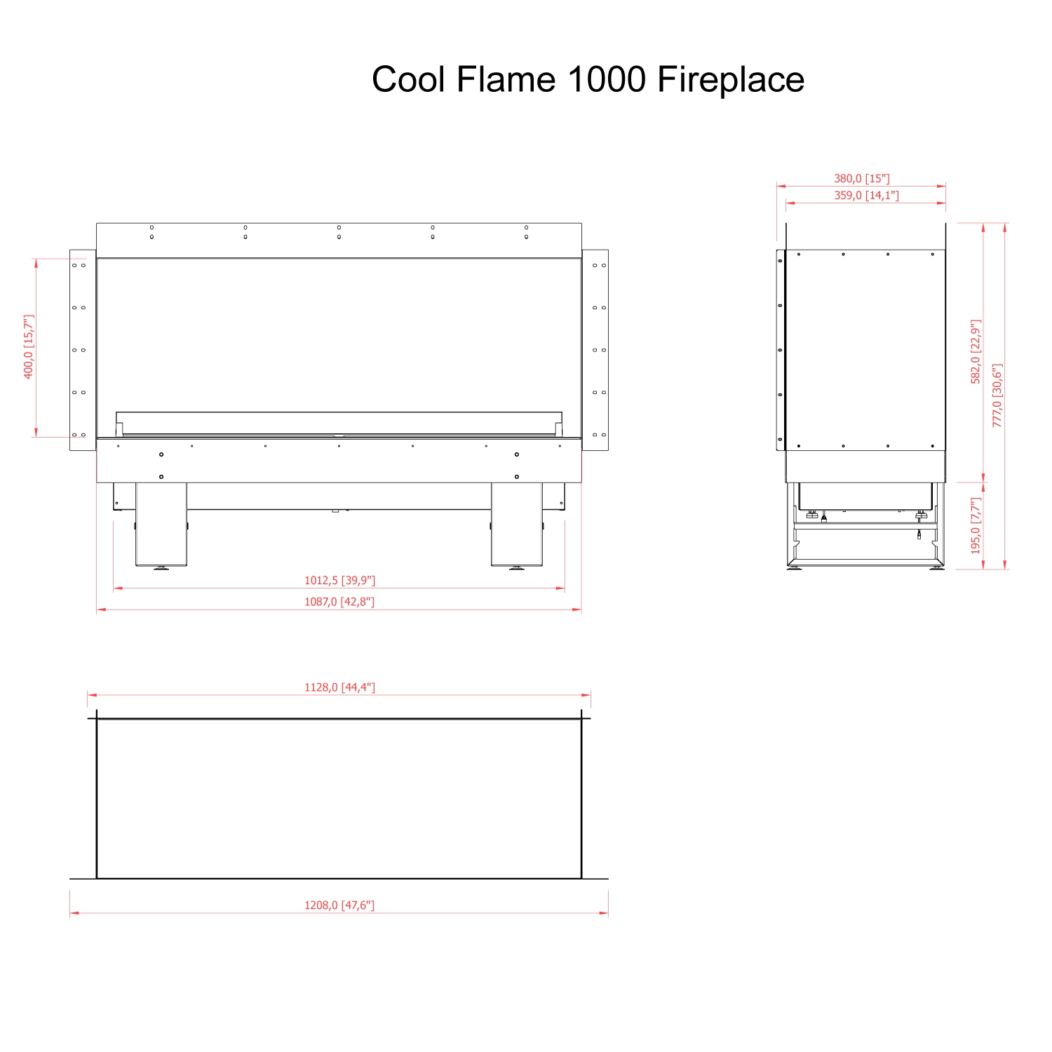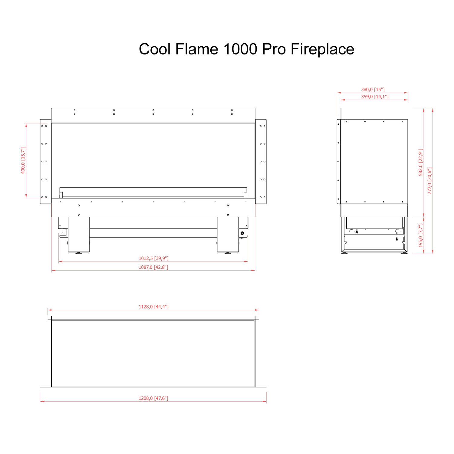 Planika Fires Cool Flame 1000 Left Corner built-in fireplace is equipped with a 1 meter Cool Flame insert with a standard black metal top plate. It is possible to purchase decorative logs, which are placed inside the fireplace, providing a more realistic and cozy flame image.