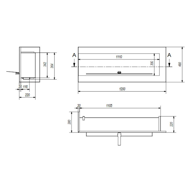 Corner bio fireplace, 120 cm left sided