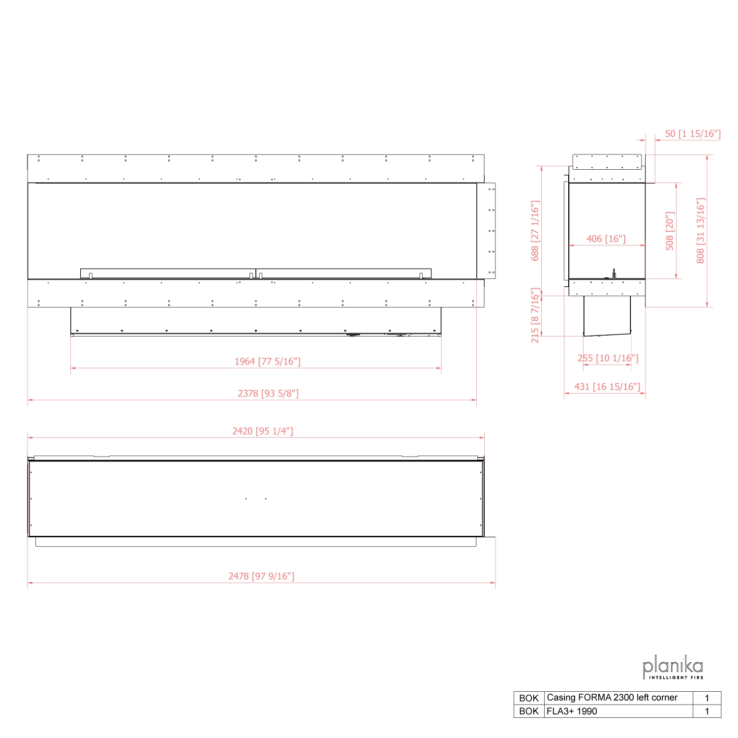 Please note that this Forma fireplace is oriented to the left. This means that the fireplace is open at the front and on the left side when you look at it from the front.