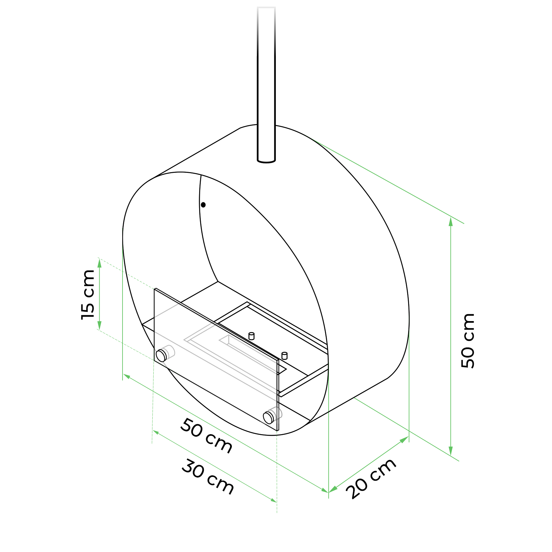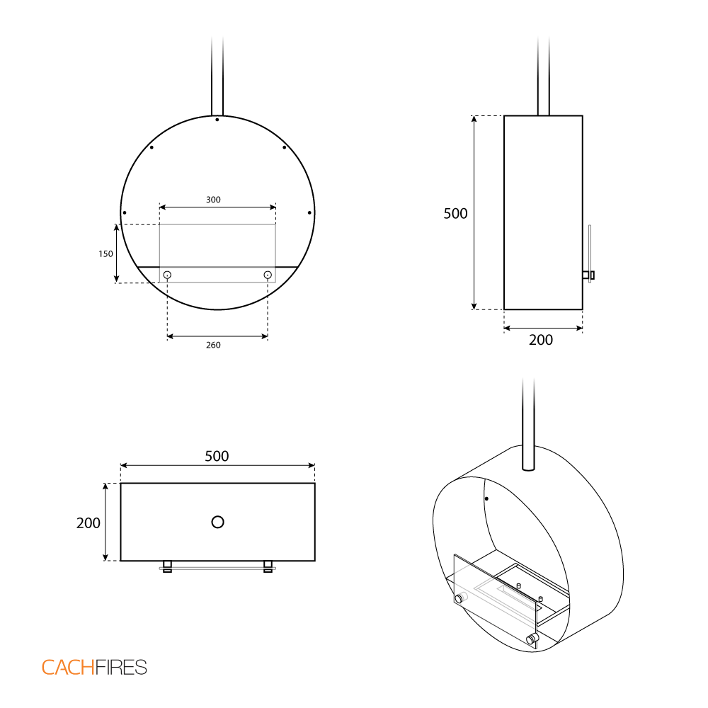 Ottawa is a round suspended bioethanol fireplace with a 1 litre bioethanol burner that gives up to 4.5 hours of burn time per filling of bioethanol.