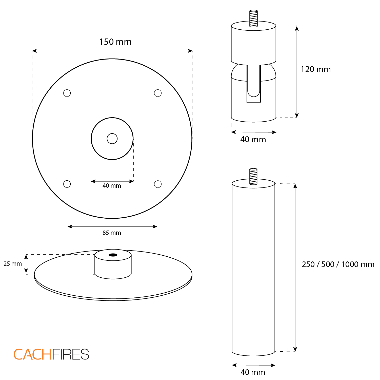 As standard, a ceiling rod of 1 meter is included with the fireplace. If the mounting system is required to be longer, additional extension rods of 25 cm, 50 cm and 100 cm can be purchased.