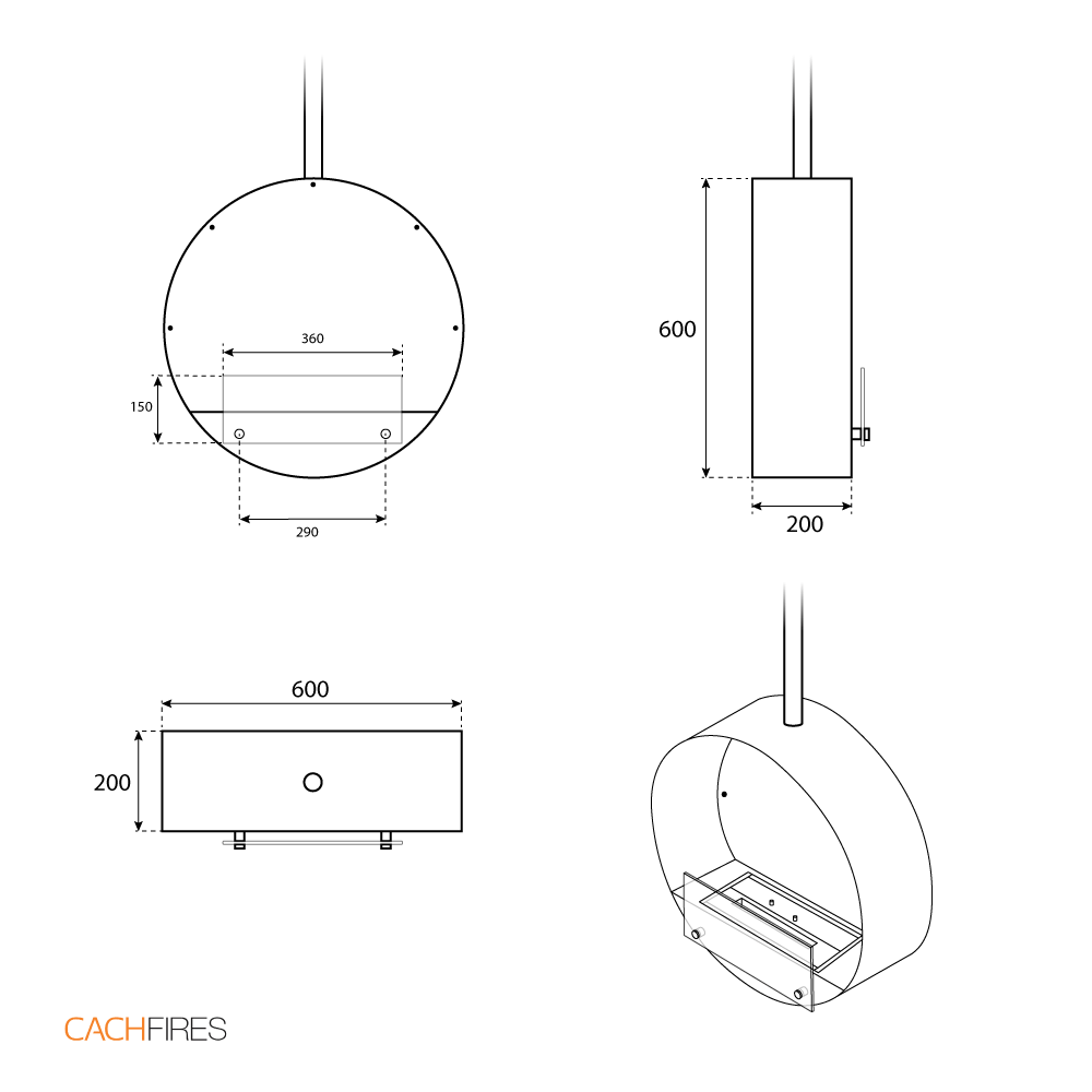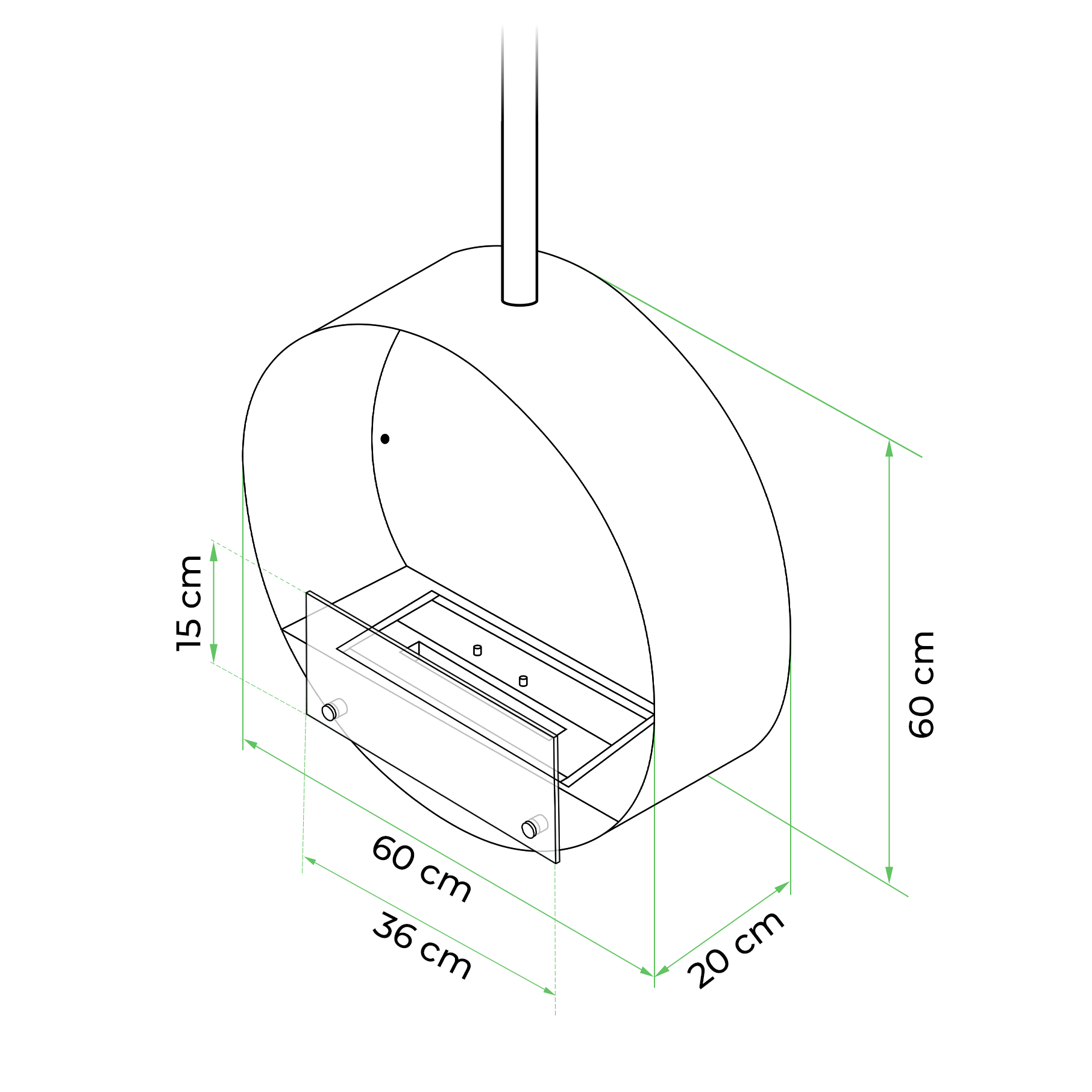 The Ottawa is a round suspended bioethanol fireplace with a 1.5 litre bio ethanol burner, with a burn time of 6 hours per filling.