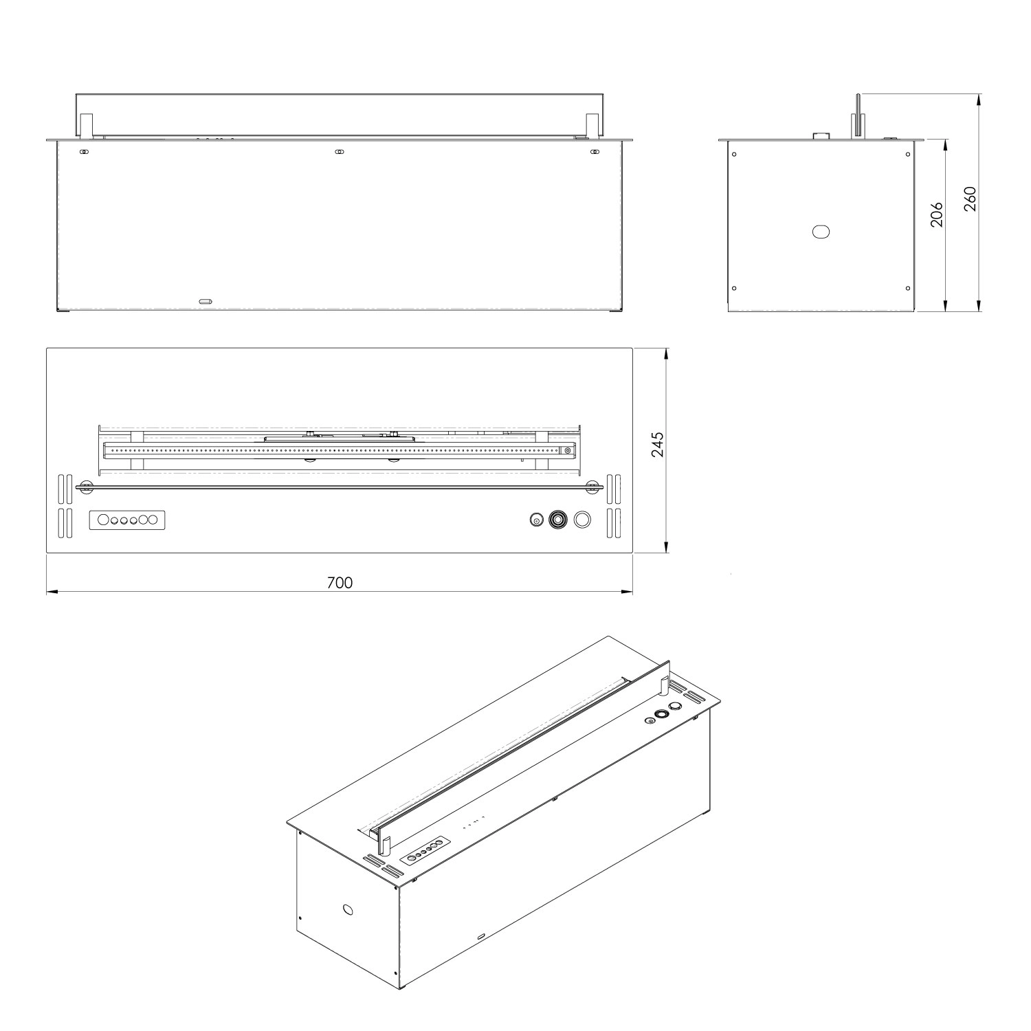 The BEV Burner 700 is a 70 cm wide and 24.5 cm deep automatic bioethanol burner with remote control – a sleek and modern solution for those who want the cosy ambience of a fireplace without the need for a chimney.