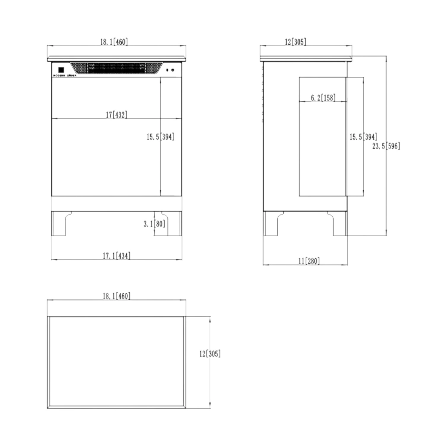 - Flame view: front, left and right sides