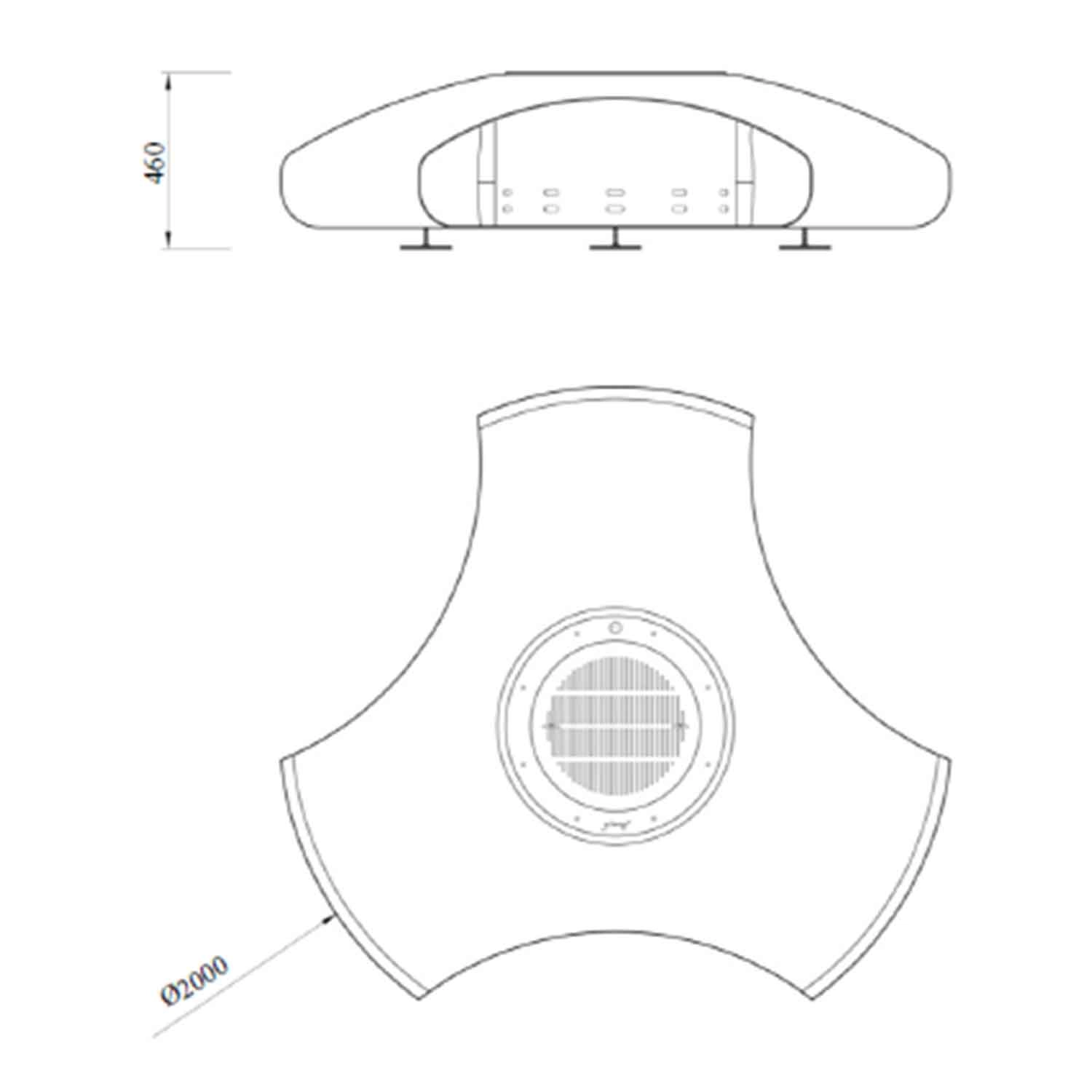 - Dimensions: 200 cm length, width, and diameter; 46 cm height
